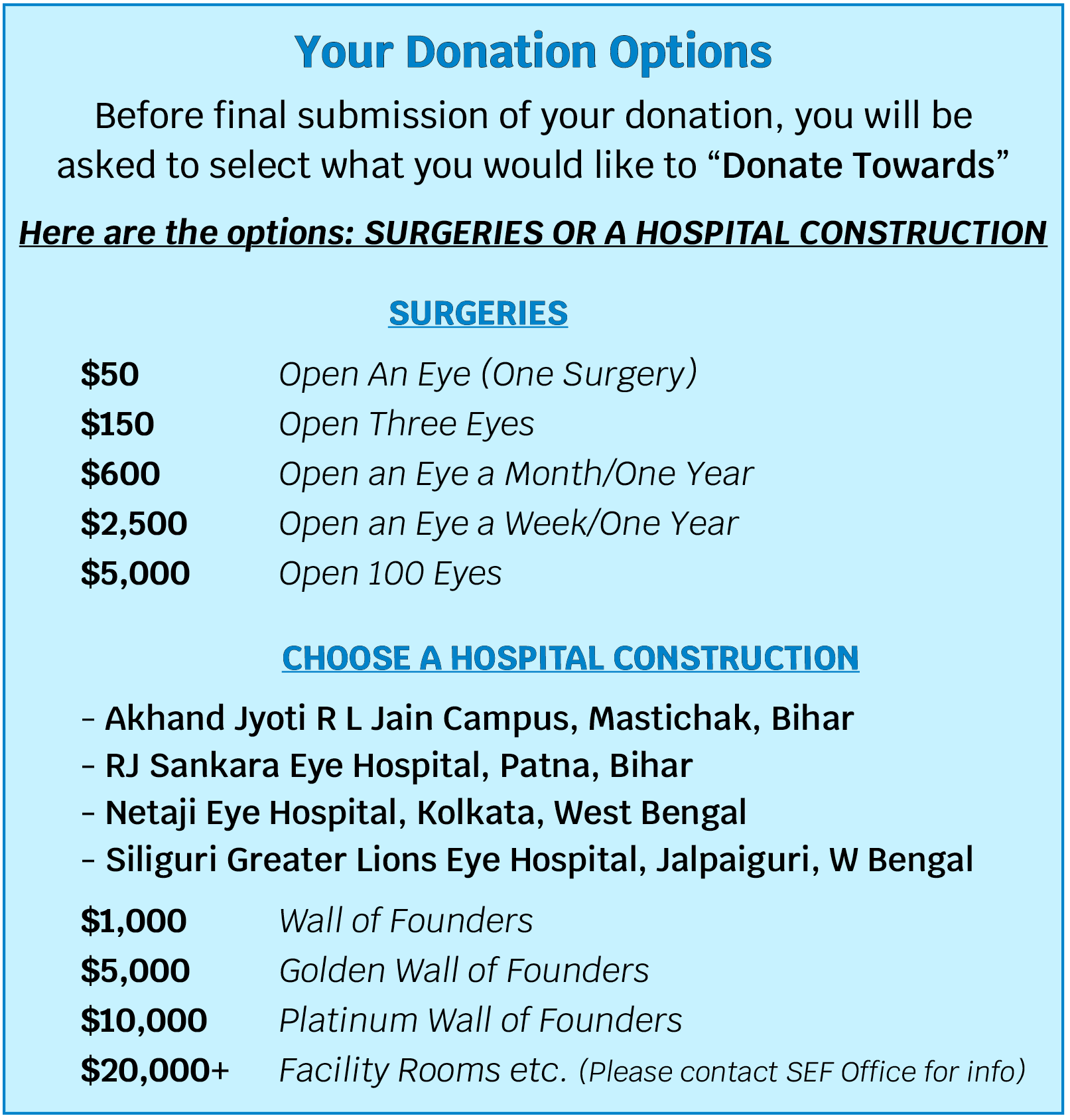 For 27 years, SEF, USA has been working to eliminate curable blindness in India.