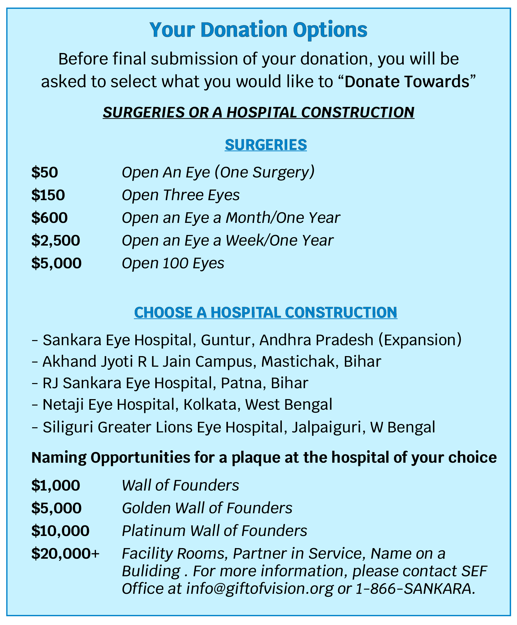 For 27 years, SEF, USA has been working to eliminate curable blindness in India.