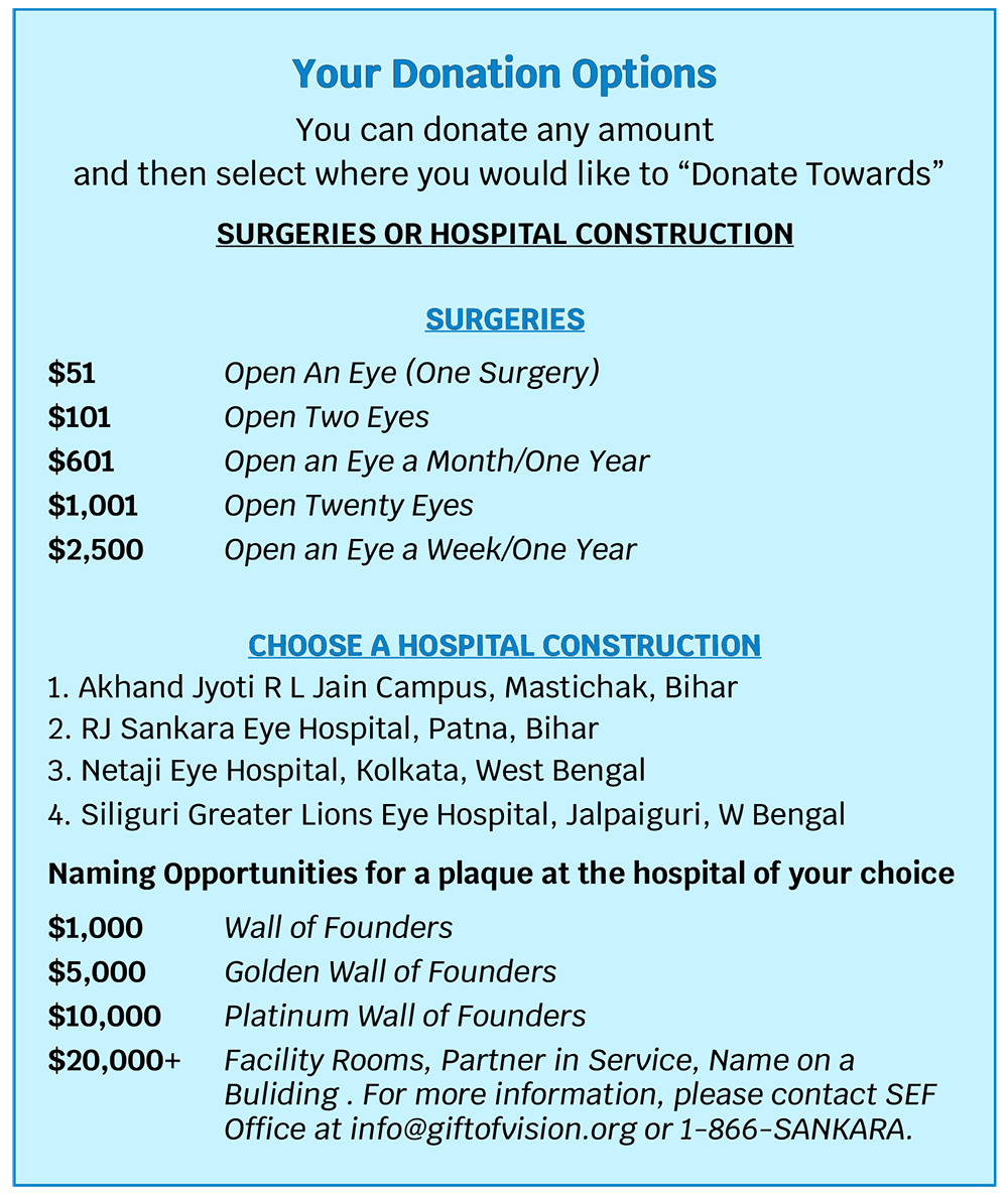 For 27 years, SEF, USA has been working to eliminate curable blindness in India.